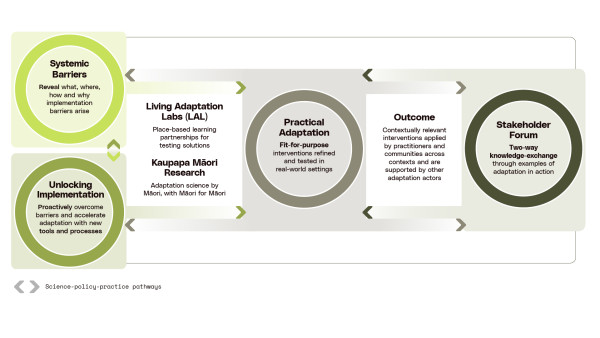 The Accelerating Adaptation programme is designed to close New Zealand’s adaptation gap by identifying barriers to action and testing interventions that reduce the costs of climate impacts, enhance resilience, and support a prosperous society. Grounded in systems innovation and living labs with frontline practitioners, the programme will be delivered through three inter-linked components and a stakeholder forum to share and learn from real-life examples. Credit: Earth Sciences New Zealand