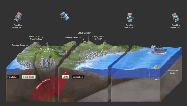 The dynamic and interconnected local earthquake and tsunami process and the sensor networks available to provide multi-data analysis for forecasting their real-time impacts. Credit: Earth Sciences New Zealand
